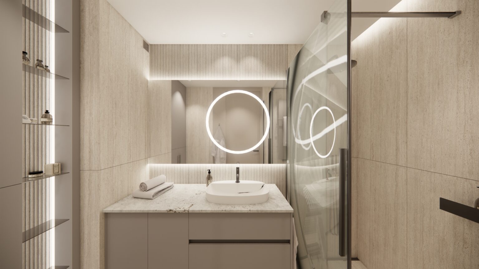 Mieszkanie znajduje się w jednym z apartamentowców w centrum Poznania. Inwestorzy oczekiwali, by wnętrze było zaprojektowane tak, by jednocześnie mogło służyć pod wynajem a w przyszłości także dla ich dzieci. Klienci oczekiwali sprawdzonych rozwiązań, trwałych materiałów, a przede wszystkim funkcjonalnego rozplanowania wszystkich funkcji. Przestronny salon łączy się z kuchnią i jadalnią, w korytarzu znajdują się pojemne szafy, dwie sypialnie mogą być zamienione na pokoje dla dzieci, a w łazience wygospodarowano miejsce na pralkę, suszarkę, wygodny prysznic i dużą ilość szaf. W sypialniach wygodnie mieszczą się duże łóżka i szafy. Strefa dzienna łączy komfort wypoczynku z wygodą użytkowania.